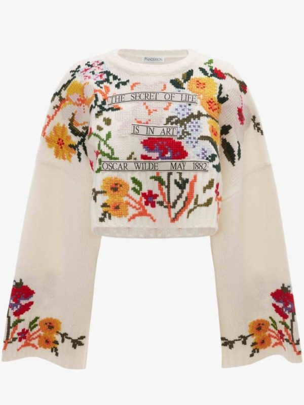 JW Anderson Knitwear | Oscar Wilde Capsule: Cropped Wide Sleevejumper Ivory Men